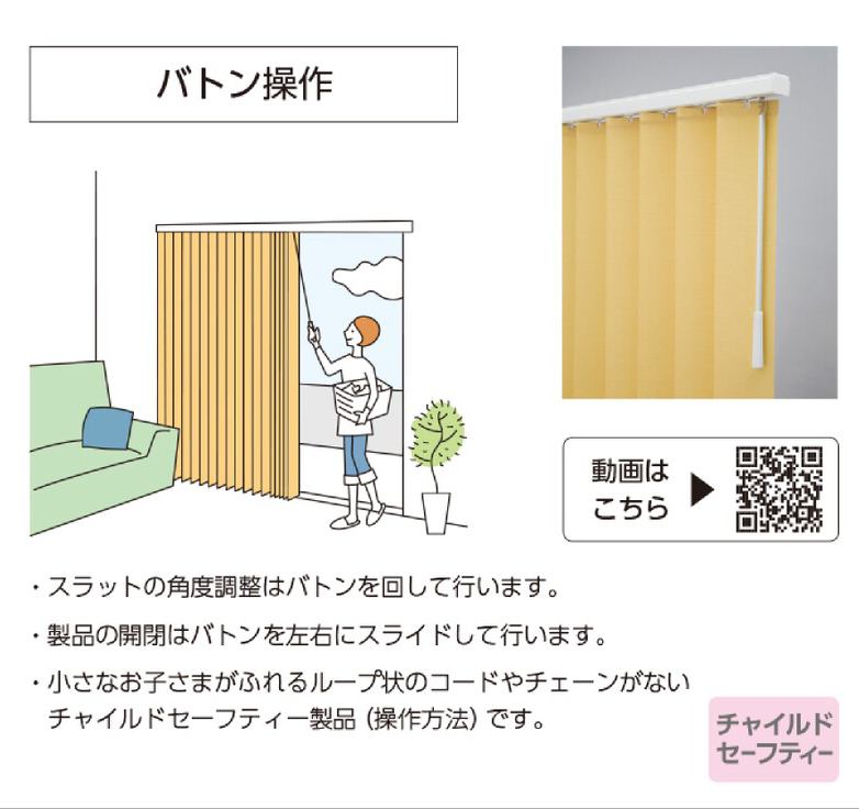 | ●コメント | 【ラインドレープ バトン操作(ショールーム展示有!)】 製品の開閉はバトンを左右にスライドして行います。 バトンを回してスラットの角度調整が可能。 ループ状のコードやチェーンがないためお子様にも安心 【ロールスクリーン レース(ショールーム展示有!)】 室内温度の上昇を抑える遮熱生地(画像参照) 一般のレース生地と比較して紫外線遮蔽率の高い生地(UVカット率71.3%)なので、 家具や床材の日焼けを防ぎます。 |