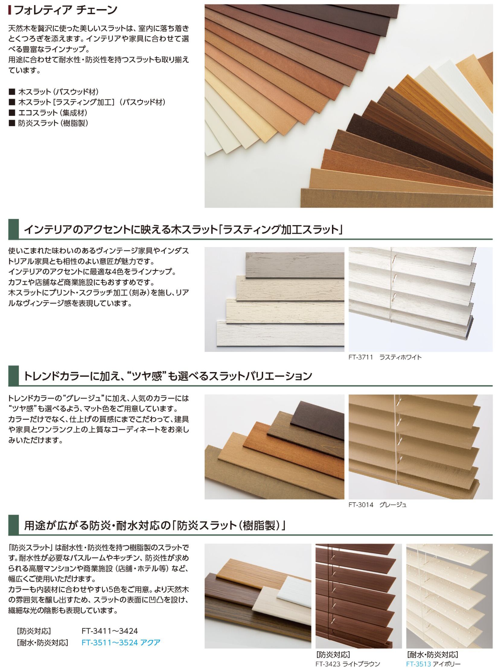 | ●コメント | 【ウッドブラインド(他メーカー品の展示も有!)】 木スラットはバスウッド材を使用。 スラット幅は25mm、35mm、50mm 全24色の中から選べます。 50mm限定で防炎スラットも全5色あります。 ラダーテープは26色の中からお好みで選べます。 (スラット幅25mmは22色) 操作チェーンを引くだけで自動的にゆっくりブラインドが下りるので、 大きな窓や複数ある窓では便利です。 |