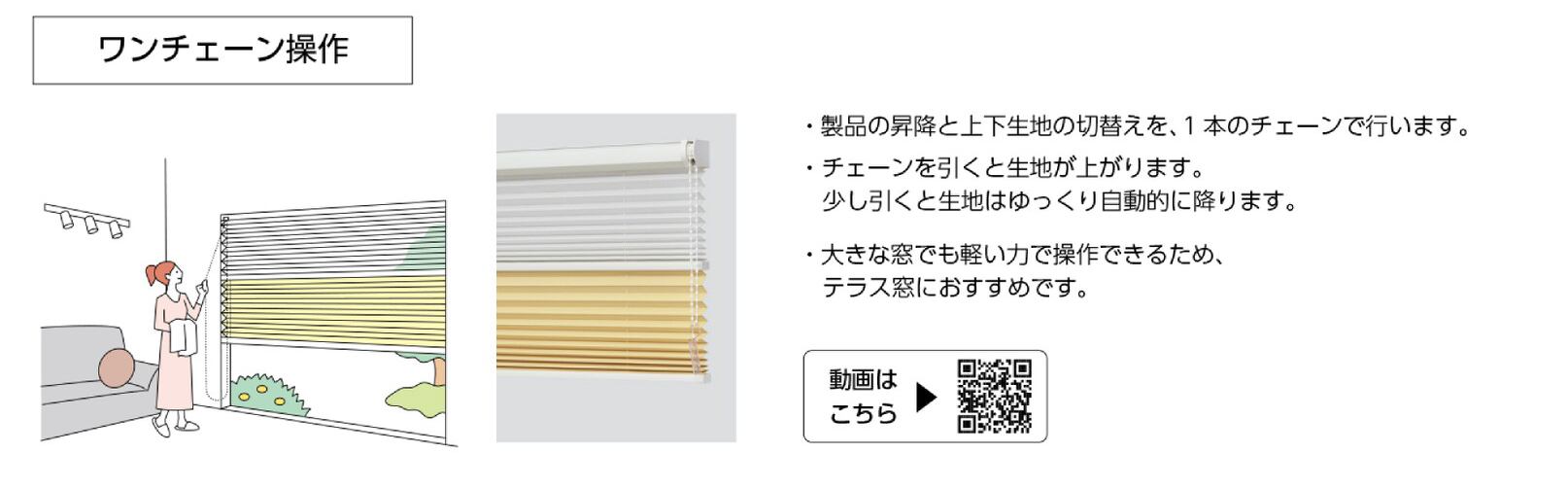 | ●メーカー・仕様 | 【タチカワブラインド】 ・商品名:プリーツスクリーン ペルレ ・生地品番:上部 フェアリー PS-2514 ブロンズ 下部 マカロン PS-2341 ショコラ ・部品色:ダークブラウン(木目調) ・操作方法:ワンチェーン操作 |
